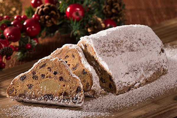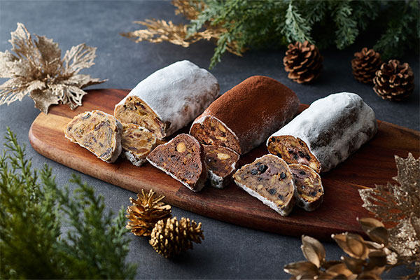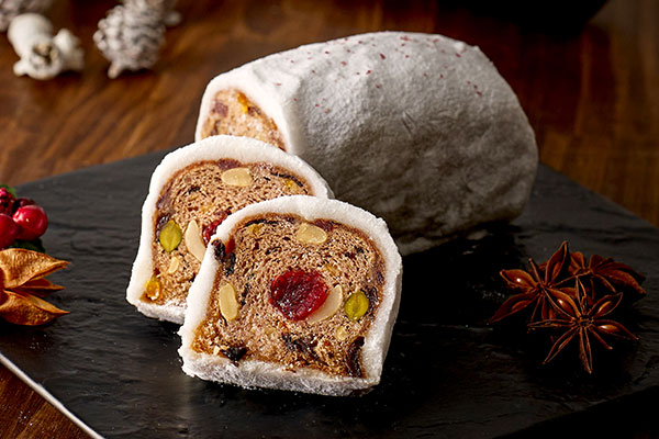 クリスマスの定番スイーツ シュトーレンは、いちごのドライフルーツとビーツでほんのりピンク色に仕上げ、スパイスやラム、ナッツの多彩な風味が楽しめる大人の味わいに仕上げました。