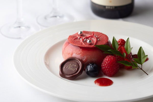 シェフとの会話を楽しみながら、華麗な手さばきを堪能できる鉄板焼。全長12メートルのロングカウンターや、きらびやかな大阪の景色を一望できるコーナーカウンターが優雅な空間を演出します。鉄板焼コース「Noël」では、メインの長崎県産「平野幸一之牛」をはじめ、毛蟹、鮑、フォワグラなど、素材の魅力を最大限に引き出す鉄板焼の技をお楽しみください。ソムリエが取り揃えた多彩なワインコレクションから、ペアリングも。食後のデザートワゴンまでゆっくりと、特別な聖夜をお過ごしください。