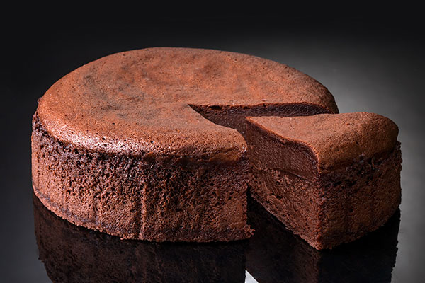 ②濃厚ショコラムースにフランボワーズ、ピスタチオ、チョコレートクランチの層で味と食感をお楽しみいただけます。
