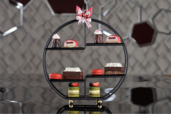 サンタクロースをモチーフにしたプチスイーツ3種とアーティスティックなパフェが楽しめる期間限定のアフタヌーンティーセットです。フレンチシェフ考案のセイボリーとともに、ホリデーシーズンのティータイムをお楽しみください。