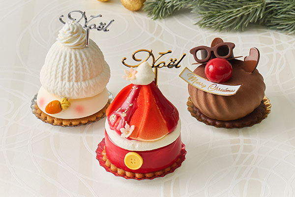 ②大人のシュトーレン今年のストーリー仕立てのプチケーキ「クリスマス・ストーリー」は、サンタ・雪だるま・トナカイが帽子で着飾るファッションショーがテーマ。