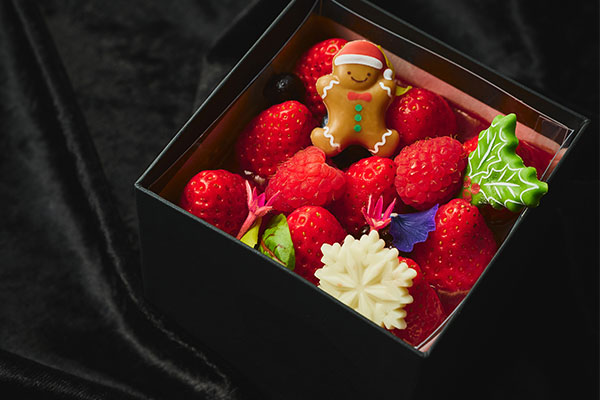 (ボワット・ドゥ・ボヌール・ノエル)開業1周年を記念して誕生した「幸せの小箱ケーキ」が、クリスマススタイルで登場します。黒いボックスの中にそっと忍ばせたのは、やさしく上質な味わいのショートケーキ。苺やラズベリー、ブルーベリーをふんだんにあしらい、華やかな彩りとともに、ベリーの甘やかな香りが広がります。ボックスを開けた瞬間のときめきをお届けする、特別なスイーツです。